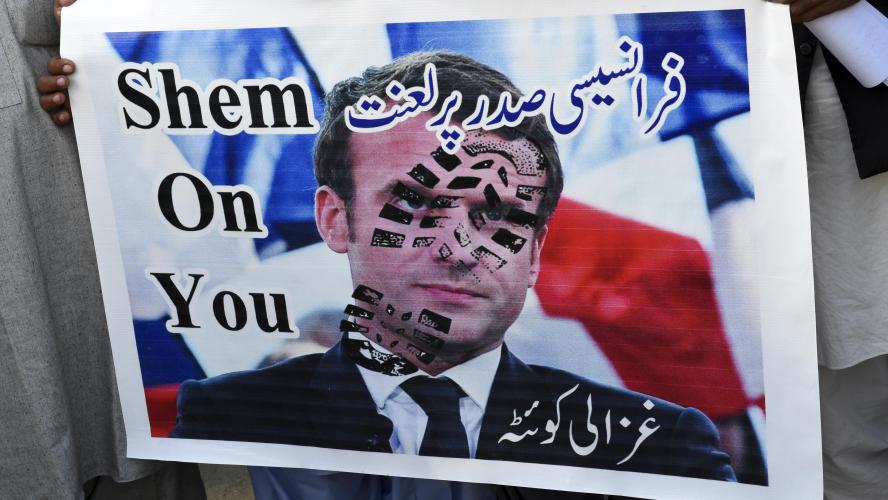 Les manifestants scandaient des slogans appelant au «Boycott des produits français» et à «punir» M. Macron.