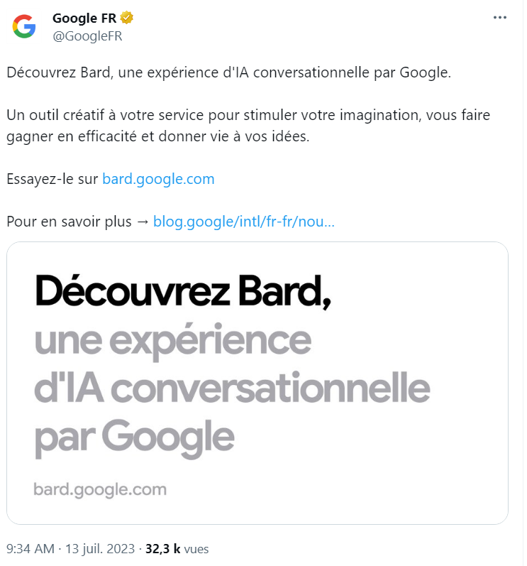 Le lancement retardé de Bard dans l’UE avait été interprété comme une précaution de Google face à la volonté de Bruxelles de réguler les algorithmes d’intelligence artificielle, qui suscitent de nombreuses craintes en matière de vie privée, de désinformation ou de respect de la propriété intellectuelle.
