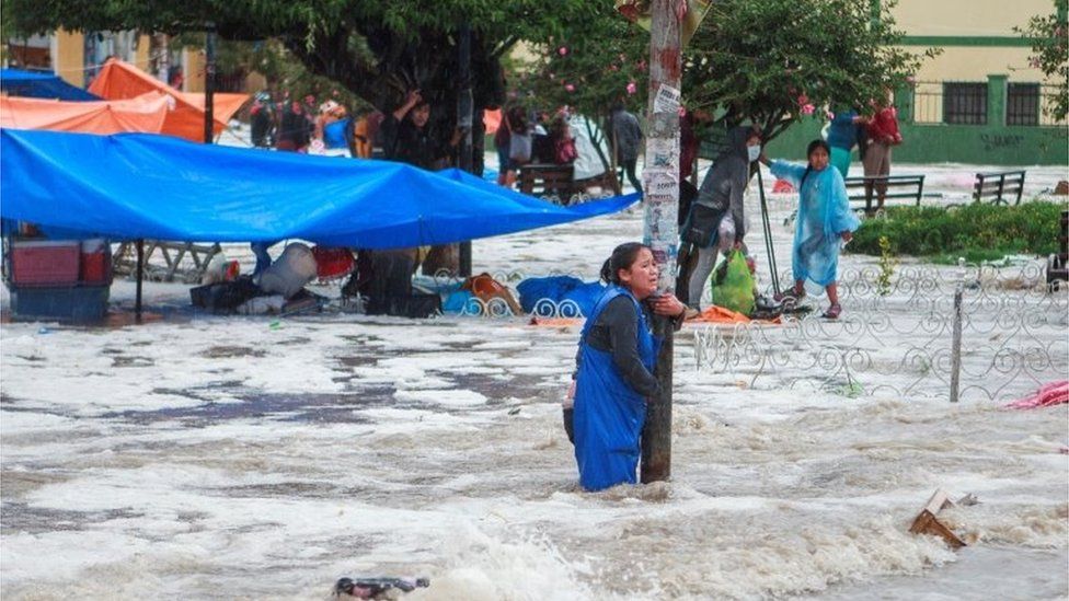 The worst affected area was around the city’s largest farmers market, where drains were blocked by rubbish, making the flooding worse.