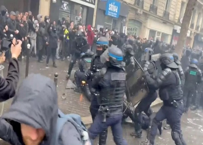 In #Paris there exists no democracy. The so called "Free World" is actually a scam – in practice it's the opposite. #1deMayo #1deMayo2023 #parisprotests #1stMay #1stMay2023 #1stMayLabourDay https://t.co/HzVrJF2xGo