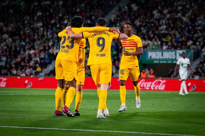 Aidé par le doublé de Robert Lewandowski., le FC Barcelone se rapproche toujours plus du titre après sa large victoire à Elche (0-4).