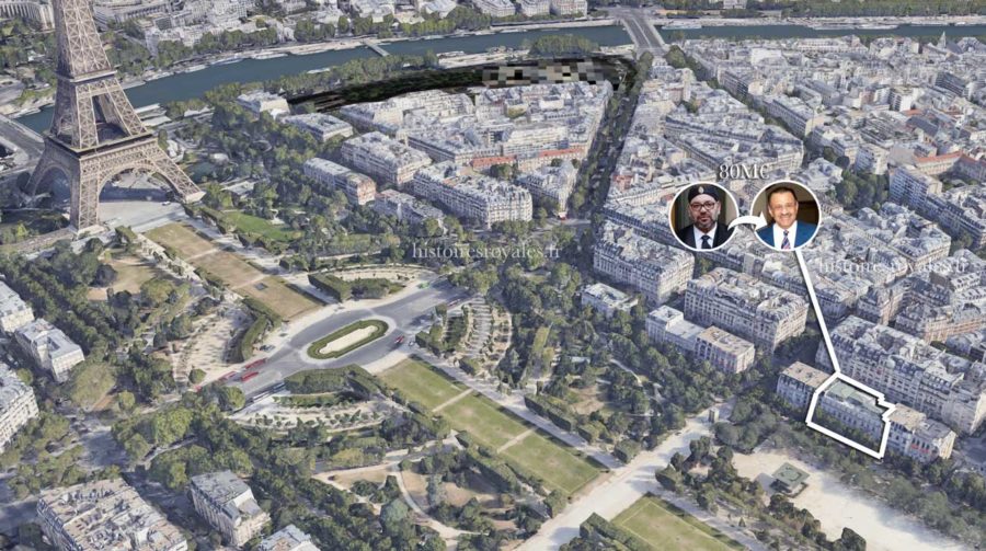 L’hôtel particulier de l’avenue Emile-Deschanel a été acheté au prince Khaled ben Sultan ben Abdelaziz al-Saoud, membre de la famille royale saoudienne, ancien vice-ministre de la Défense, via une société. C’est la société DSCI Deschanel qui a fait l’acquisition du bien, dont le cadastre mentionne une superficie de terrain de 1080 mètres carrés. DSCI Deschanel est une société dont l’actionnaire à 99,9% n’est autre que le roi Mohammed VI. Mounir Majidi, le secrétaire particulier du Roi, et Hicham Naciri ont été chargés de s’occuper des négociations pour l’achat de ce bien construit en 1912.
