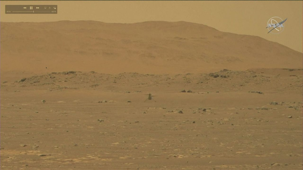 Il avait reçu ses instructions de la Terre quelques heures auparavant mais a volé en autonomie, en analysant lui-même sa position par rapport au sol. Le lendemain du vol, une fois ses batteries rechargées, l’hélicoptère doit transmettre une photo en couleur de l’horizon, prise par son autre appareil photo.