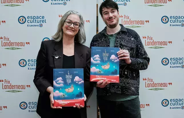 Le Bateau Rêve, récit sur le monde des songes, a reçu le prix Landerneau album jeunesse jeudi 15 février, après la délibération du jury composé de neuf libraires d’Espaces Leclerc et présidé par le précédent lauréat Baptiste Beaulieu. Cet album, réalisé par l’autrice Séverine Vidal et l’illustrateur Julien Arnal, suit l’histoire de deux enfants qui tentent de construire une machine à explorer le royaume de la nuit.