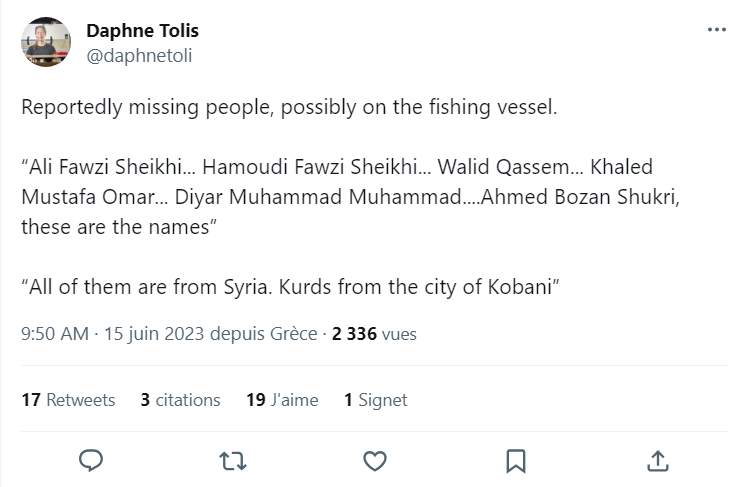 Des listes de personnes disparues comment à être publiées sur les réseaux sociaux. C’est comme cela que certains Syriens ont découvert via Facebook qu’un de leur proche était à bord du bateau.