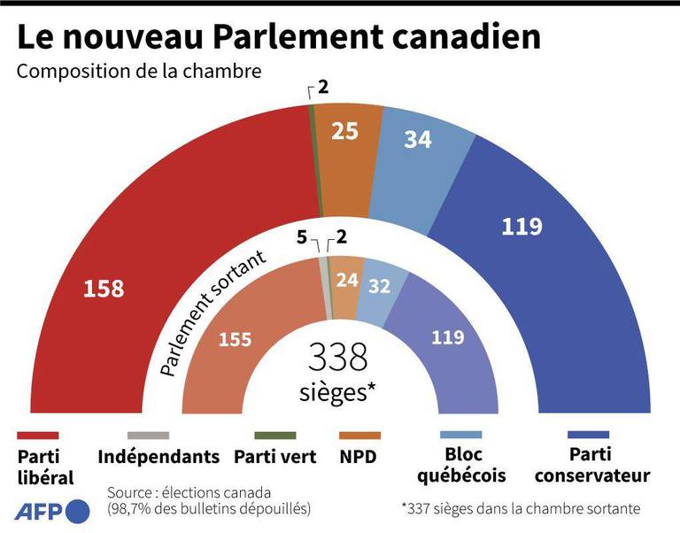 D’après les projections, le parti libéral obtiendrait autour de 155 sièges, sous le seuil des 170 sièges permettant d’obtenir une majorité. Or, c’est précisément pour sortir de cette situation qu’il avait déclenché des élections anticipées à la mi-août pour tenter de regagner la majorité qu’il avait perdue deux ans plus tôt.