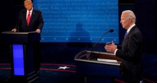From the moment the two septuagenarian leading men stepped onto the stage, the contrast between them leaped off the screen: US President Donald Trump in his trademark red tie, his Democratic challenger Biden in electric blue. Trump maskless, Biden removing a black mask from his face as he strode towards his lectern.