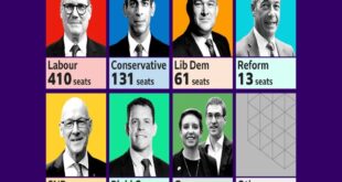 An exit poll carried out by polling company Ipsos, and paid for by the BBC, ITV and Sky says Starmer’s Labour Party will win the general election with 410 seats. The final outcome of the election should be clear by early on Friday.