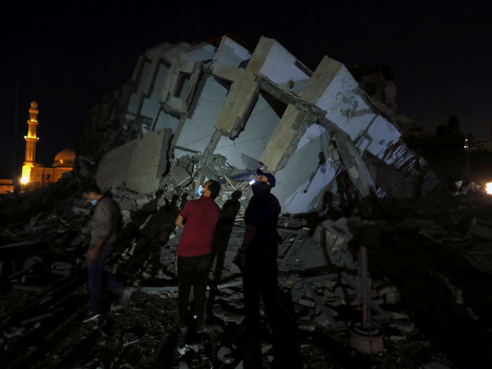 Dans le centre-ville de Gaza, un immeuble de neuf étages comportant des habitations, des commerces et une chaîne de télévision locale a été détruit. L’armée israélienne a confirmé y avoir ciblé un bâtiment, expliquant qu’il était utilisé par le Hamas pour ses activités de renseignement militaire. Celle-ci a également pulvérisé un édifice de douze étages, où des ténors du Hamas avaient leur bureau.