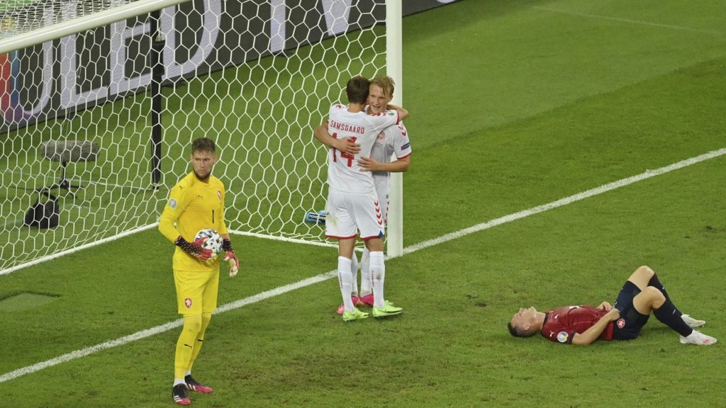 Les Danois ont pris l’avantage en 1re mi-temps grâce à des réussites de Delaney (5e) et Dolberg (42e), ce dernier après un somptueux assist de Maehle. Les Tchèques ont réagi grâce à l’inévitable Schick (49e), auteur de son 5e but du tournoi, mais ils ne sont pas parvenus à arracher les prolongations.